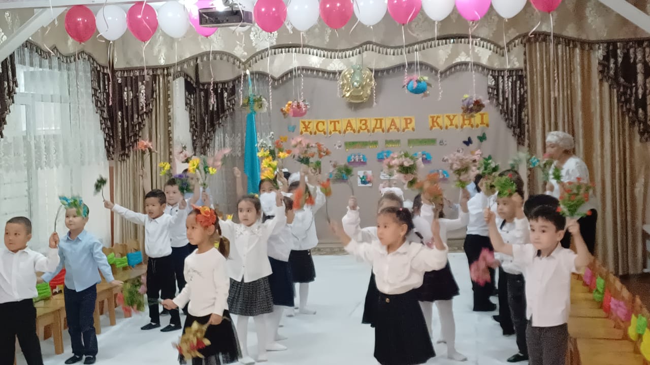 09 қазан 2025 0 1 2 3 4 5 "Ұстазға мың алғыс" мерекелік іс-шара Мақсаты: Балалардың ұстаз еңбегін бағалап, оларға деген құрмет пен сүйіспеншілігін тәрбиелеу; мерекелік шара арқылы тілдік, музыкалық, көркемдік қабілеттерін дамыту және ұстаздарға қуаныш сыйлау. Мектепалды "Сұңқар" тобы . Тәрбиеші Машахаева Э.Қ