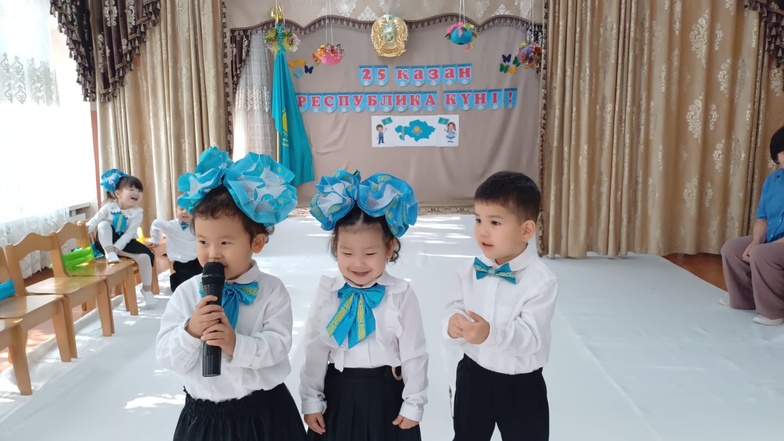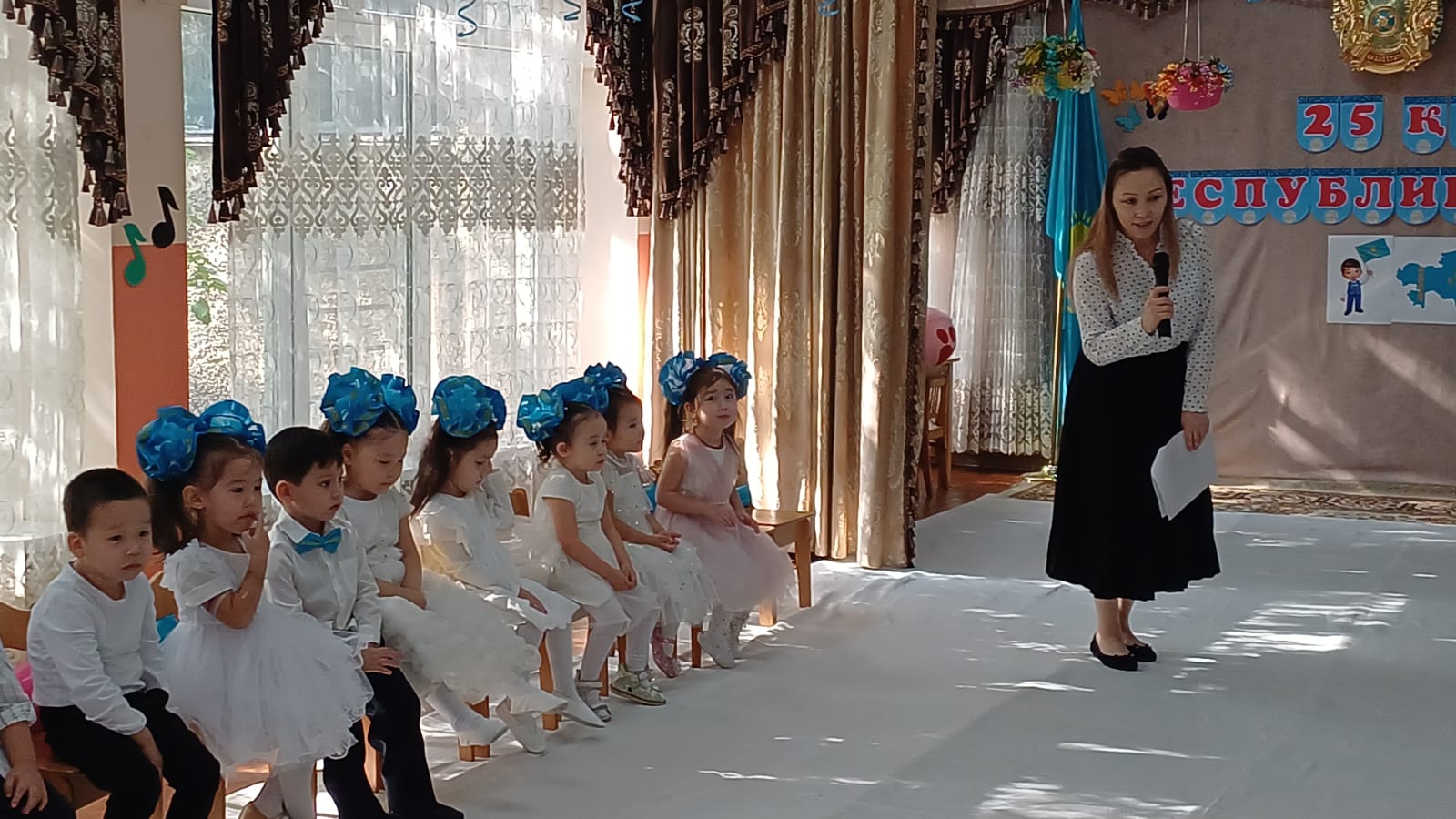 Балаларға Республика күні туралы түсінік беру, Қазақстан Республикасының мемлекеттік рәміздерімен таныстыру, туған елге деген сүйіспеншілік пен мақтаныш сезімін тәрбиелеу.