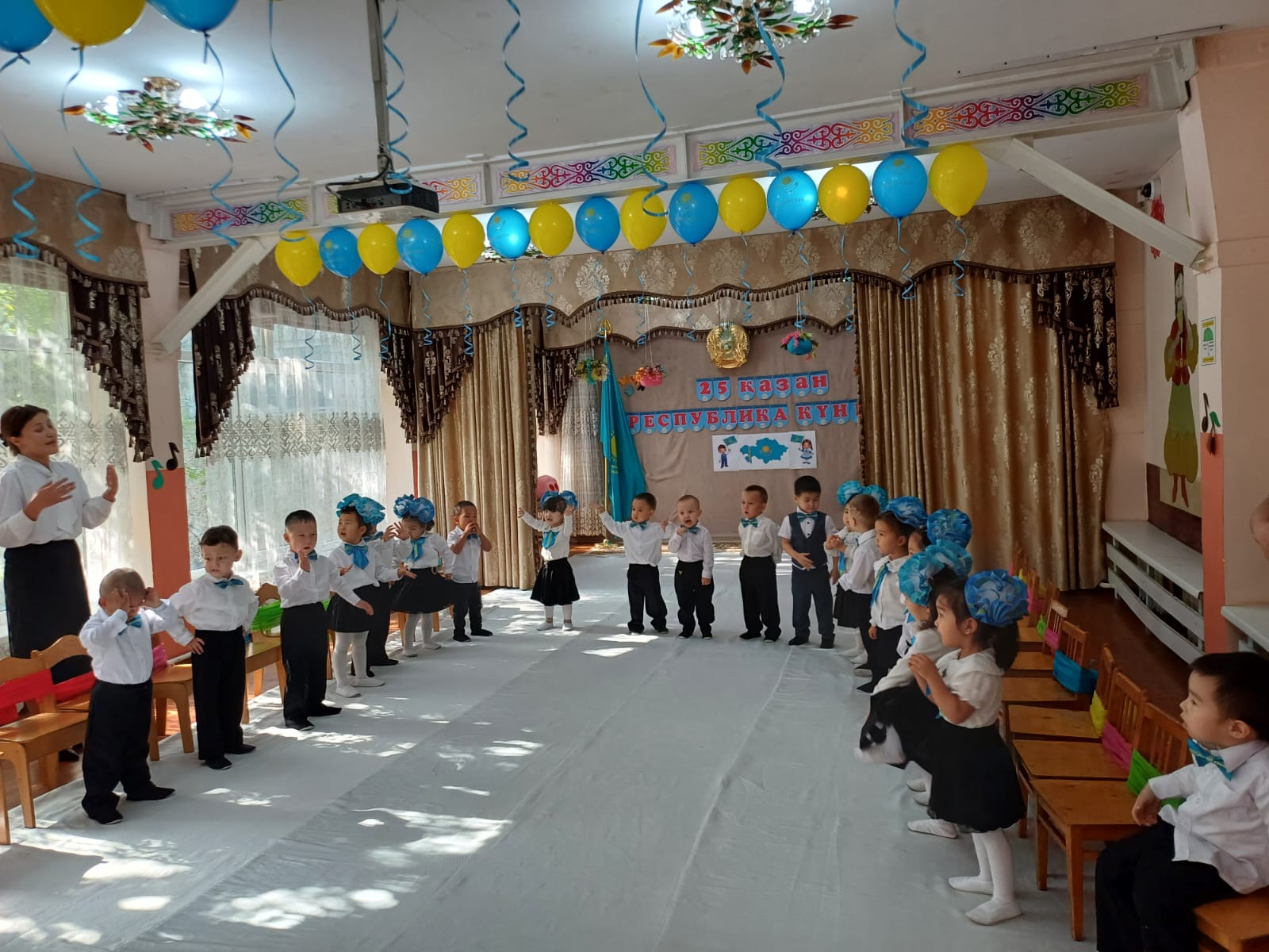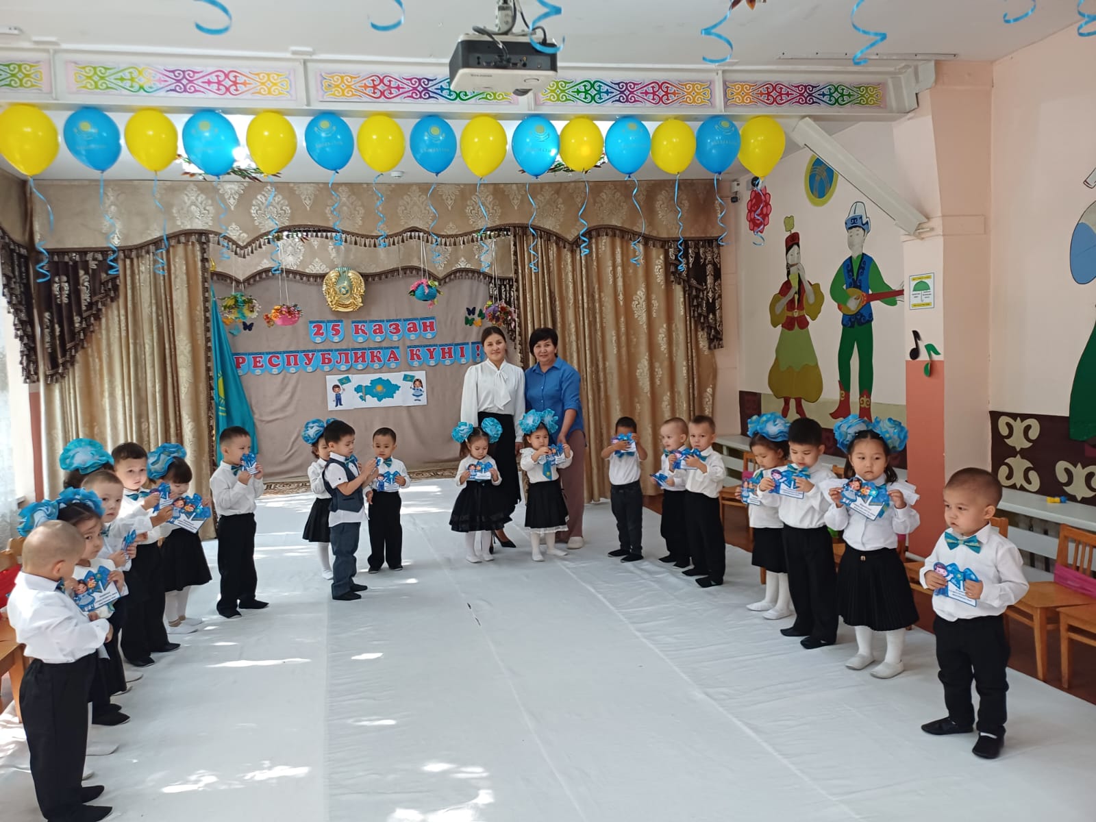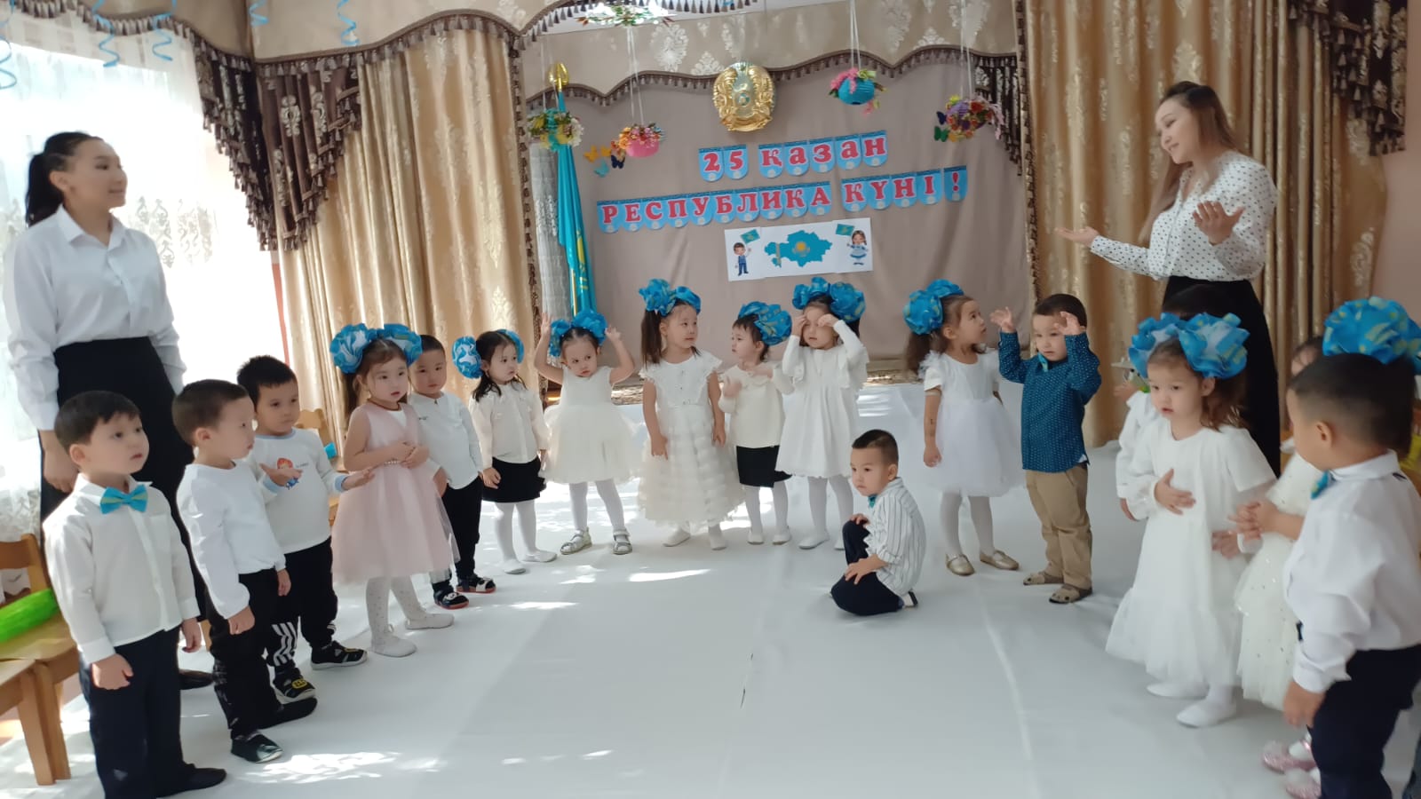 Ортаңғы "Құлыншақ" және "Ақбота"тобы . Тәрбиешілер Рахымжаанова М, Абдіраимова М. Музыка жетекшісі Мамадияр М