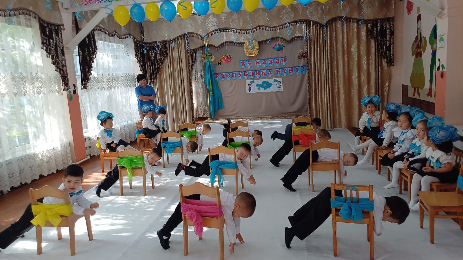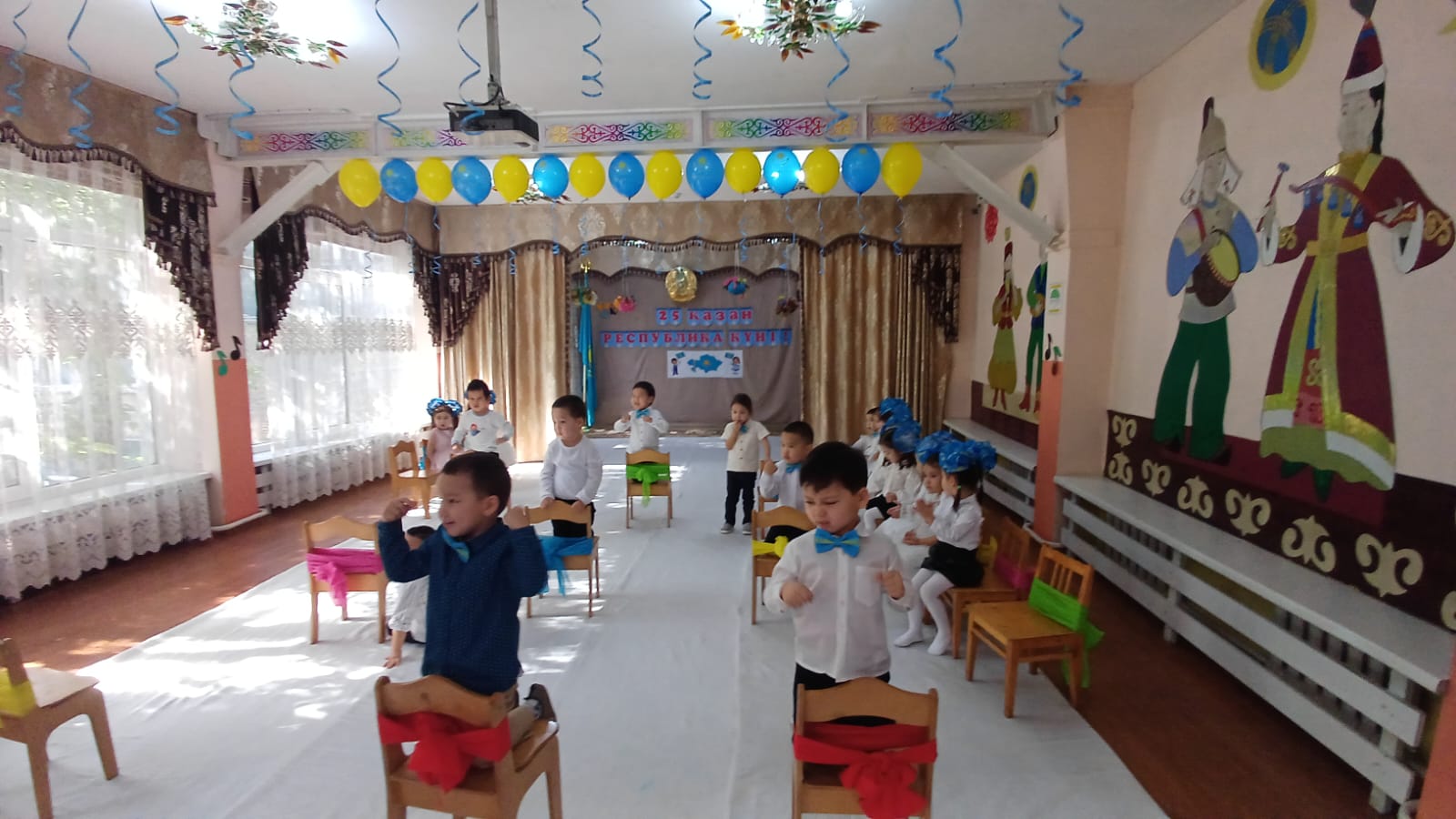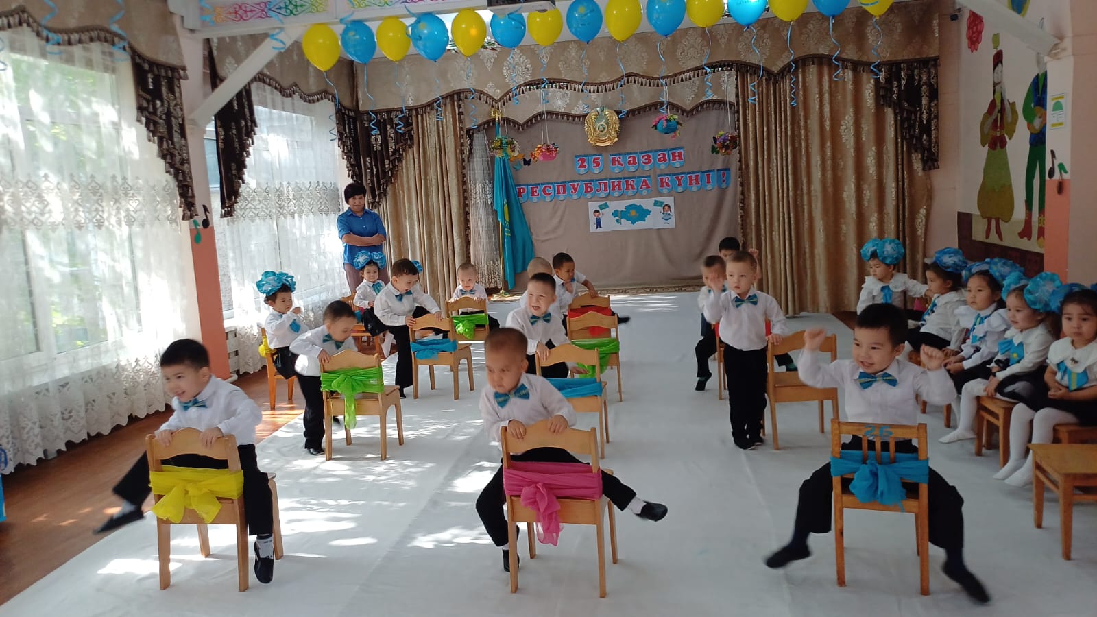 Ортаңғы "Құлыншақ" және "Ақбота"тобы . Тәрбиешілер Рахымжаанова М, Абдіраимова М. Музыка жетекшісі Мамадияр М