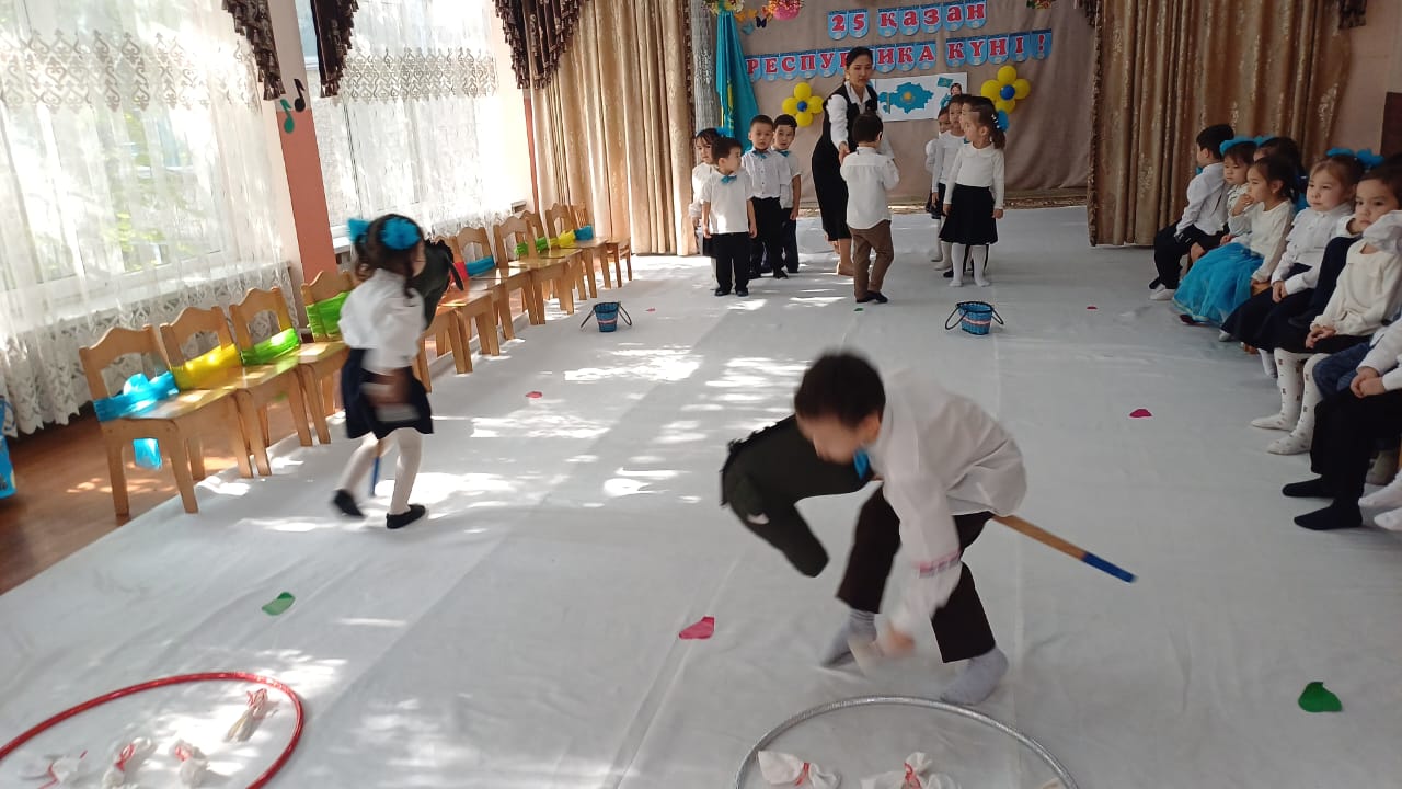 Мақсаты: Балаларға Қазақстан – біздің туған Отанымыз екенін түсіндіру, елге деген сүйіспеншілік пен мақтаныш сезімін тәрбиелеу, мемлекеттік рәміздер мен мерекелер туралы түсініктерін кеңейту, туған жерді сүюге және құрметтеуге баулу.