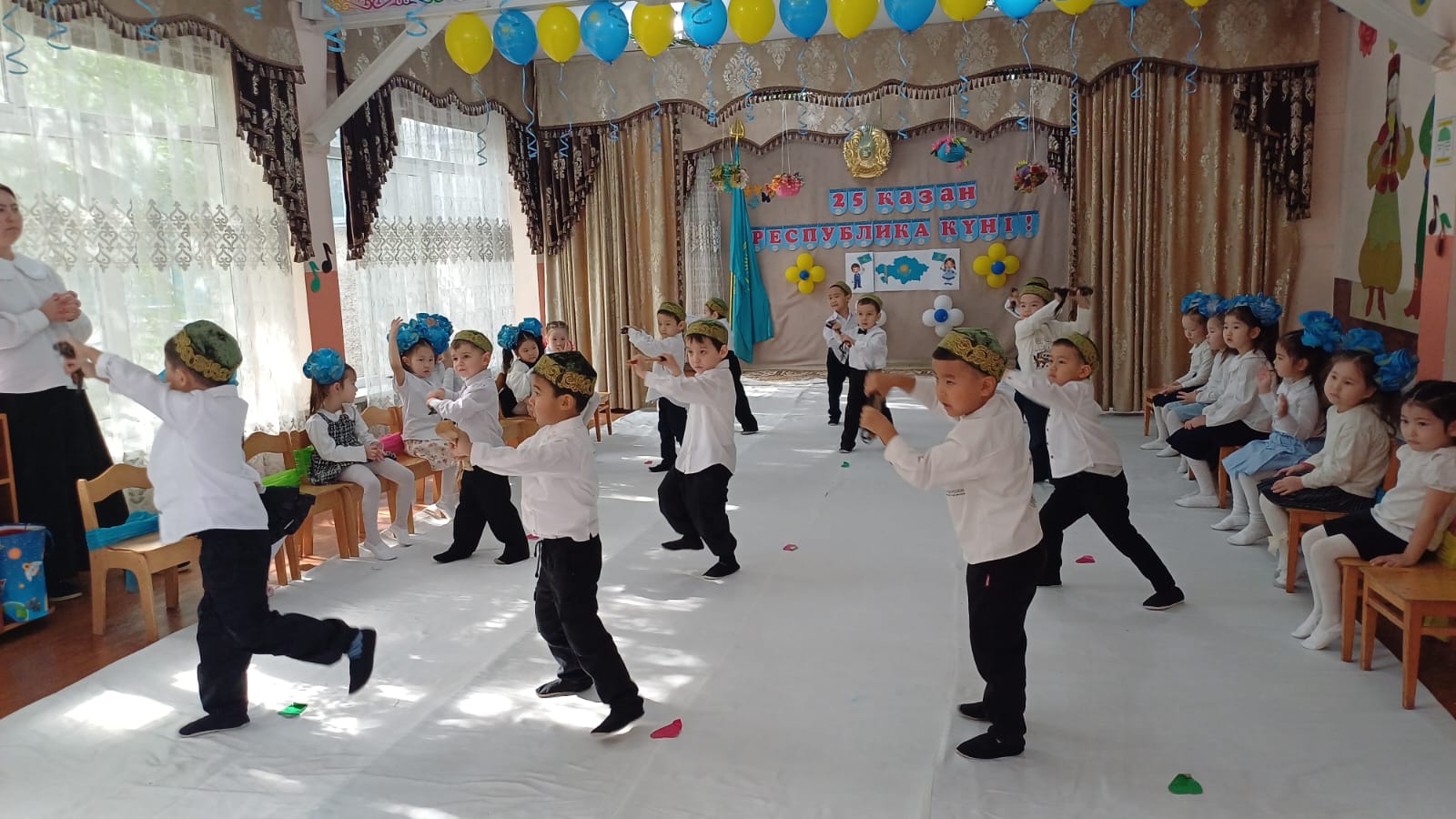 Тәрбиеші Копбергенова Н, Иманғалиева А . Музыка жетекшіісі Мамадияр М
