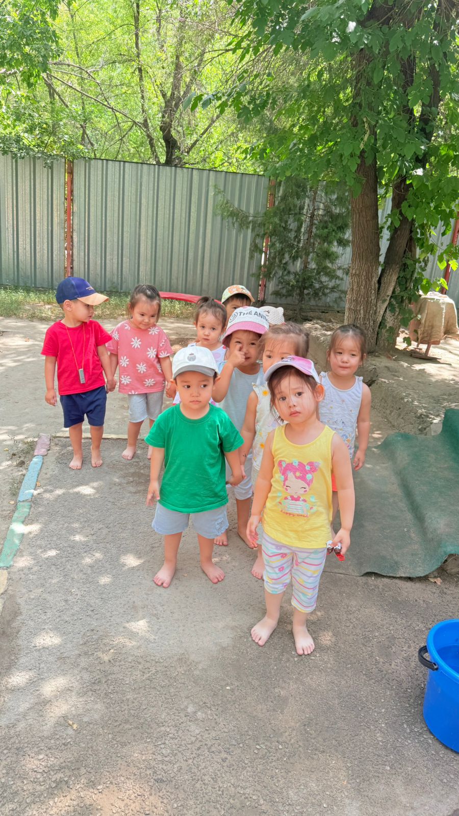 Мақсаты: Асфальтте жалаңаяқ жүру , ұсақ тастардың үстімен жүру , ыстық құммен ойнау, шөппен жалаңаяқ жүру кезінде түрлі нүктелеріне массаж жасау арқылы қан айналымын жақсарту. Ортаңғы "Құлыншақ" тобы. Тәрбиеші Болд Н